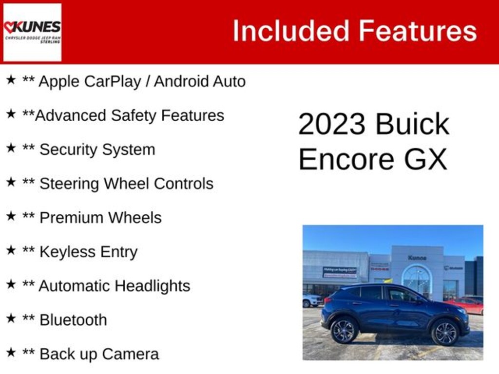 Discover the perfect balance of style, technology, and performance with the 2023 Buick Encore GX Select. Experience the difference for yourself by scheduling a test drive today. We're confident that once you get behind the wheel, you'll be captivated by the exceptional value and unparalleled driving experience this vehicle has to offer.