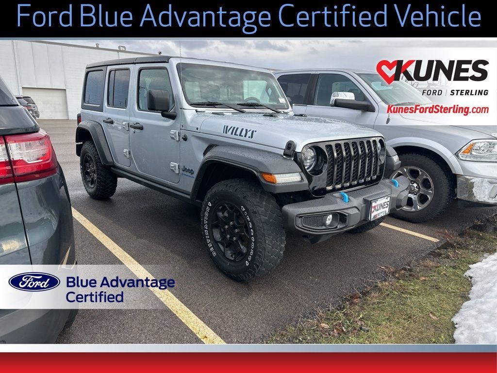 BACKUP CAMERA, SIRIUSXM RADIO, BLUETOOTH, Ford Blue Advantage: Blue Certified Certified, 2.0L I4 DOHC, 4xe 4-Wheel Drive Swing Gate Decal, 9 Speakers, 97 MPH Vehicle Max Speed Calibration, Black 3-Piece Hard Top, Black Grille, Delay-off headlights, Emergency communication system: SiriusXM Guardian, Freedom Panel Storage Bag, Front anti-roll bar, Front LED Fog Lamps, Integrated Center Stack Radio, Integrated roll-over protection, LED Headlamp & Fog Lamp Group, LED Premium Reflector Headlamps, Normal Duty Suspension, Occupant sensing airbag, Panic alarm, Radio data system, Radio: Uconnect 4 w/7" Display, Radio: Uconnect 4C Nav w/8.4" Display, Rear anti-roll bar, Rear Window Defroster, Rear Window Wiper/Washer, Steering wheel mounted audio controls, USB Host Flip, Voltmeter, Wheels: 17" x 7.5" Black Aluminum, 3.73 Rear Axle Ratio, 4-Wheel Disc Brakes, 4G LTE Wi-Fi Hot Spot, ABS brakes, Air Conditioning, Alloy wheels, AM/FM radio: SiriusXM, Anti-Spin Differential Rear Axle, Apple CarPlay, Apple CarPlay/Android Auto, Automatic temperature control, Body Color Door Handles, Brake assist, Cloth Low-Back Bucket Seats, Compass, Driver door bin, Driver vanity mirror, Dual front impact airbags, Dual front side impact airbags, Electronic Stability Control, Front Bucket Seats, Front Center Armrest w/Storage, Front dual zone A/C, Front fog lights, Front License Plate Bracket, Front reading lights, Fully automatic headlights, Google Android Auto, GPS Antenna Input, GPS Navigation, Heated door mirrors, Illuminated entry, Integrated Voice Command w/Bluetooth, Low tire pressure warning, Molded-In-Color Fender Flares (2-Piece), MOPAR All-Weather Floor Mats, Outside temperature display, ParkView Rear Back-Up Camera, Passenger door bin, Passenger vanity mirror, Power door mirrors, Power steering, Power windows, Quick Order Package 29W Willys, Rear reading lights, Remote keyless entry, Security system, Speed control, Split folding rear seat, Tachometer, Telescoping steering wheel, Tilt steering wheel, Traction control, Trip computer, Variably intermittent wipers, Willys, Willys 4xe Hood Decal, 2.0L I4 DOHC, 4xe 4-Wheel Drive Swing Gate Decal, 9 Speakers, 97 MPH Vehicle Max Speed Calibration, Black 3-Piece Hard Top, Black Grille, Delay-off headlights, Emergency communication system: SiriusXM Guardian, Freedom Panel Storage Bag, Front anti-roll bar, Front LED Fog Lamps, Integrated Center Stack Radio, Integrated roll-over protection, LED Headlamp & Fog Lamp Group, LED Premium Reflector Headlamps, Normal Duty Suspension, Occupant sensing airbag, Panic alarm, Radio data system, Radio: Uconnect 4 w/7" Display, Radio: Uconnect 4C Nav w/8.4" Display, Rear anti-roll bar, Rear Window Defroster, Rear Window Wiper/Washer, Steering wheel mounted audio controls, USB Host Flip, Voltmeter, Wheels: 17" x 7.5" Black Aluminum.