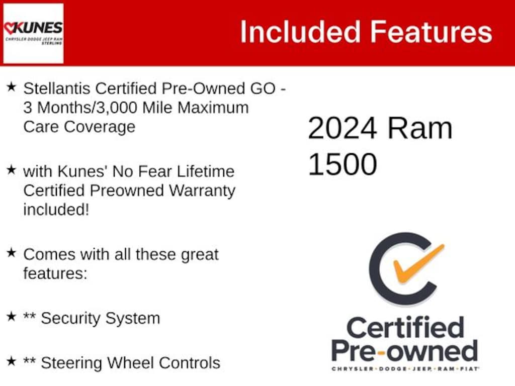 ⢠Stellantis Certified Pre-Owned GO - 3 Months/3,000 Mile Maximum Care Coverage with Kunes' No Fear Lifetime Certified Preowned Warranty