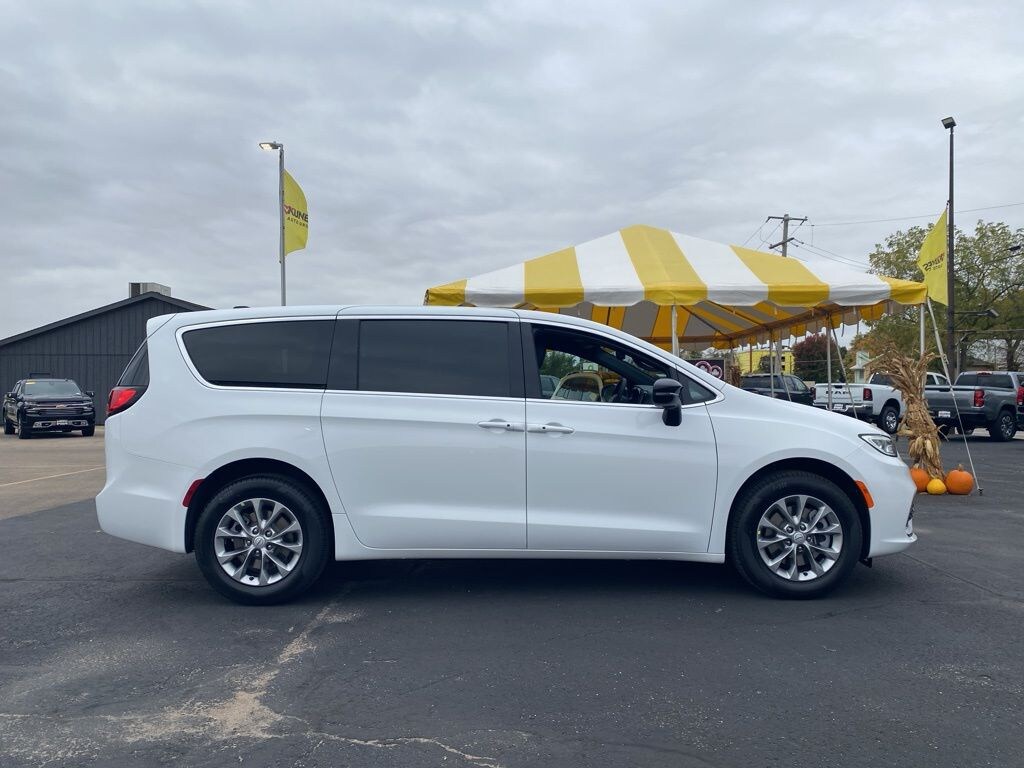 Third Row Seating, Advanced Safety Features, Bluetooth, Apple CarPlay/ Android Auto, Heated Seats, Remote Start, Rear Park Assist, Heated Steering Wheel, Backup Camera, 2nd Row Captain Seats, Pacifica Select, 4D Passenger Van, 3.6L V6 24V VVT, 9-Speed 948TE Automatic, AWD, Bright White Clearcoat, Black Artificial Leather, Quick Order Package 27L, 10.1" Touchscreen Display, 18" x 7.5" Painted Aluminum Wheels, 3.73 Axle Ratio, 3rd row seats: split-bench, 4-Wheel Disc Brakes, 4G LTE Wi-Fi Hot Spot, 6 Speakers, ABS brakes, Air Conditioning, Alloy wheels, AM/FM radio: SiriusXM, Apple CarPlay, Apple CarPlay/Android Auto, Auto-dimming Rear-View mirror, Automatic temperature control, AWD Suspension, Black Seats, Brake assist, Bumpers: body-color, Caprice Leatherette Bucket Seats, Compass, Connectivity - US/Canada, Delay-off headlights, Disassociated Touchscreen Display, Driver door bin, Driver vanity mirror, Driver's Seat Mounted Armrest, Dual front impact airbags, Dual front side impact airbags, Electronic Stability Control, Emergency communication system: Chrysler Connect, For Details, Visit DriveUconnect.com, Four wheel independent suspension, Front anti-roll bar, Front Bucket Seats, Front dual zone A/C, Front fog lights, Front reading lights, Fully automatic headlights, Garage door transmitter, Google Android Auto, GPS Antenna Input, Heated door mirrors, Heated front seats, Heated steering wheel, Illuminated entry, Integrated Active Noise Cancellation, Integrated Center Stack Radio, Knee airbag, Low tire pressure warning, Memory seat, MyFlexCare Service Plan, Occupant sensing airbag, Outside temperature display, Overhead airbag, Overhead console, Panic alarm, ParkView Rear Back-Up Camera, Passenger door bin, Passenger seat mounted armrest, Passenger vanity mirror, Power door mirrors, Power driver seat, Power Liftgate, Power steering, Power windows, Radio data system, Radio: Uconnect 5 w/10.1" Display, Rain sensing wipers, Rear air conditioning, Rear reading lights, Rear window defroster, Rear window wiper, Reclining 3rd row seat, Remote keyless entry, Security system, Speed control, Split folding rear seat, Spoiler, Steering wheel mounted audio controls, Tachometer, Telescoping steering wheel, Tilt steering wheel, Traction control, Trip computer, Turn signal indicator mirrors, USB Host Flip, Variably intermittent wipers, Voltmeter, Pacifica Select, 4D Passenger Van, 3.6L V6 24V VVT, 9-Speed 948TE Automatic, AWD, Bright White Clearcoat, Black Artificial Leather, Quick Order Package 27L. Recent Arrival!