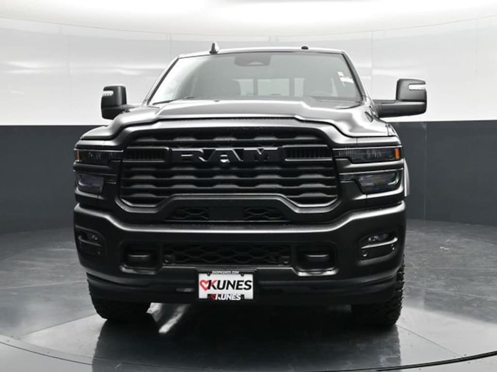 Diamond Black Crystal Pearlcoat 2026 Ram 2500 Tradesman 4WD 8-Speed Automatic 6.4L V8 Comes with all these great features:, ** Apple CarPlay / Android Auto, **Advanced Safety Features, **Adaptive Cruise Control, ** Navigation, ** Keyless Entry, ** Automatic Headlights, ** Bluetooth, ** Back up Camera, **Rear Park Assist, **SIRIUS XM, Remote Start, 2500 Tradesman, 4D Crew Cab, 6.4L V8, 8-Speed Automatic, 4WD, Diamond Black Crystal Pearlcoat, Black Cloth, Bed Convenience Group, GPS Navigation, Quick Order Package 2UB Warlock, Tradesman Level 1 Equipment Group, 115-Volt Auxiliary Front Power Outlet, 12" Touchscreen Display, 2 Way Rear Headrest Seat, 3.73 Axle Ratio, 4 Way Front Headrests, 4-Wheel Disc Brakes, 40/20/40 Split Bench Seat, 400W Inverter, 4G LTE Wi-Fi Hot Spot, 6 Speakers, ABS brakes, Air Conditioning, Air Conditioning ATC with Dual Zone Control, Alexa Built-in, AM/FM radio: SiriusXM, Anti-Spin Differential Rear Axle, Apple CarPlay, Apple CarPlay/Android Auto, Auto Power-Folding Mirrors, Auto-Dimming Rear-View Mirror, Black Exterior Mirrors, Black Wheel Center Hub, Black Wheel Flares, Brake assist, Carpet Floor Covering, Cloth 40/20/40 Bench Seat, Compass, Connected Travel and Traffic Services, Connectivity - US/Canada, Delay-off headlights, Disassociated Touchscreen Display, Driver door bin, Dual front impact airbags, Dual front side impact airbags, Electronic Stability Control, Emergency Vehicle Alert System (EVAS), Exterior 115V AC Outlet, Exterior Mirrors Courtesy Lamps, Exterior Mirrors with Heating Element, Exterior Mirrors with Supplemental Signals, For Details, Visit DriveUconnect.com, For More Info, Call 800-643-2112, Forward and Reverse Utility Lights, Front anti-roll bar, Front Armrest with Cupholders, Front Center Armrest w/Storage, Front fog lights, Front License Plate Bracket, Front Performance Tuned Shock Absorbers, Front reading lights, Fully automatic headlights, Global Telematics Box Module, Google Android Auto, GPS Antenna Input, HD Radio, Hill Descent Control, Illuminated entry, Integrated Voice Command with Bluetooth, LED Bed Lighting, Low tire pressure warning, Manual Adjust 4-Way Driver Seat, Manual Adjust 4-Way Front Passenger Seat, Manual Folding Exterior Mirrors, Manual Telescoping Mirrors, Mirror Running Lights, Mopar Black Tubular Side Steps, MOPAR Front and Rear Rubber Floor Mats, MOPAR Spray in Bedliner, MyFlexCare Service Plan, Occupant sensing airbag, Off-Road Info Pages, Outside temperature display, Overhead airbag, Overhead console, Panic alarm, ParkView Rear Back-Up Camera, Passenger door bin, Passenger vanity mirror, Power Adjust Mirrors, Power Heated Folding Telescopic Mirrors, Power steering, Power Telescoping Mirrors, Power windows, Power-Adjustable Convex Aux Mirrors, Radio data system, Radio: Uconnect 5 Navigation with 12.0" Display, Radio: Uconnect 5 with 8.4" Display, Rear anti-roll bar, Rear Folding Seat, Rear Performance Tuned Shock Absorbers, Rear Power Sliding Window, Rear step bumper, Rear Wheelhouse Liners, Rear window defroster, Remote keyless entry, Remote USB Port - Charge Only, Selectable Tire Fill Alert, SiriusXM Radio Service, SiriusXM with 360L, Speed control, Storage Tray, Tachometer, Tilt steering wheel, Tinted Acoustic Windshield Glass, Traction control, Trailer Tow Pages, Variably intermittent wipers, Voltmeter, Warlock Decal, Wheels: 17" x 7.5" Black Steel Styled, Wheels: 20" x 8.0" Black Diamond Cut Aluminum, 2500 Tradesman, 4D Crew Cab, 6.4L V8, 8-Speed Automatic, 4WD, Diamond Black Crystal Pearlcoat, Black Cloth, Bed Convenience Group, GPS Navigation, Quick Order Package 2UB Warlock, Tradesman Level 1 Equipment Group.