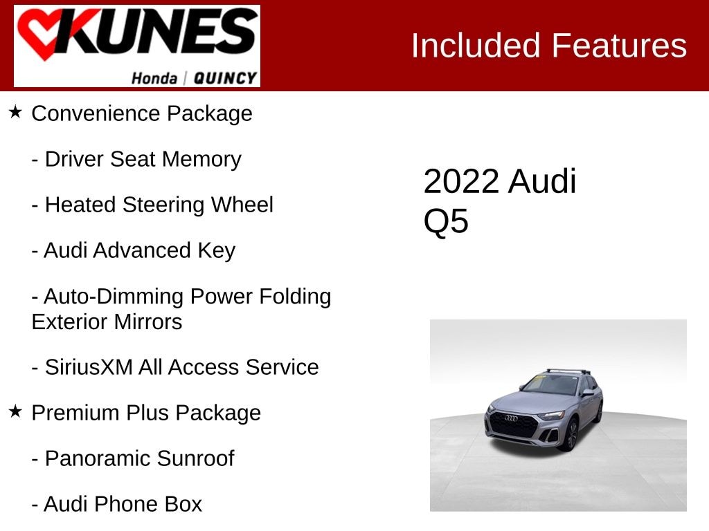 2022 Audi Q5 45 S line Premium Plus quattro quattro Silver quattro 7-Speed Automatic S tronic 2.0L Turbocharged 23/28 City/Highway MPG