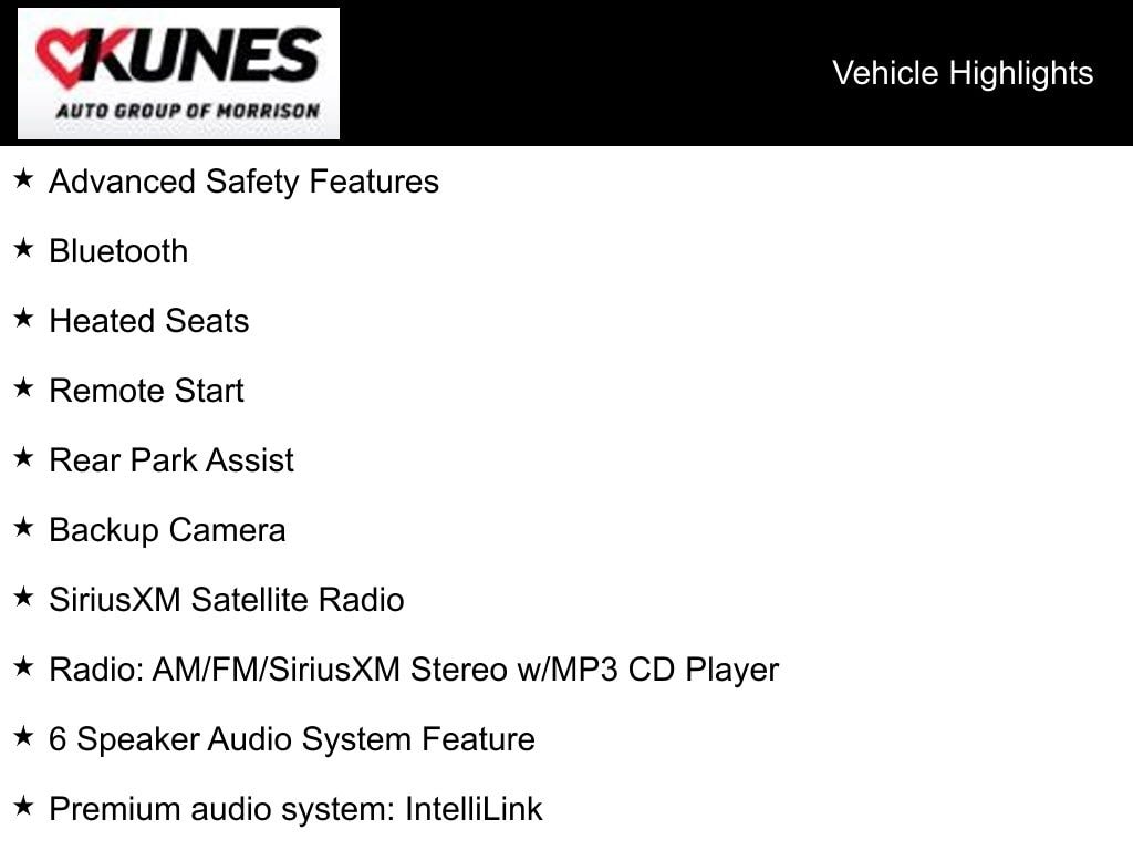 While we make every effort to ensure the data listed here is correct, there may be instances where some of the options or vehicle features may be listed incorrectly as we get data from multiple data sources. PLEASE MAKE SURE to confirm the details of this vehicle with the dealer to ensure its accuracy. Dealer cannot be held liable for data that is listed incorrectly. Listed price does not include any tax, title, license or $347.26 documentary service fee. Consult the dealer for fees, payments and complete details. * Offers or financing are subject to expiration and other restrictions. See dealer for qualifications and complete details. *Images shown may not necessarily represent exact vehicles at your dealership. See your dealer for complete details.