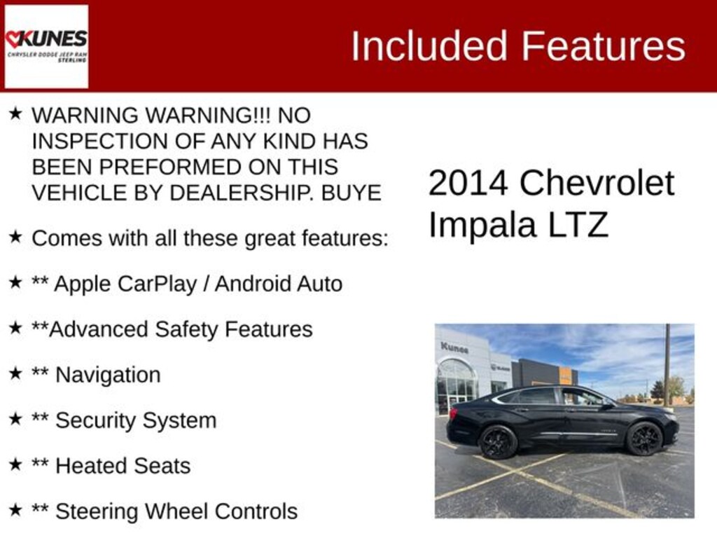 I purchased a 2014 Impala LT in November 2013. Great ride, plenty of power (V6), excellent fuel economy (28-31). Still get compliments every week on this car. Huge trunk, fits four sets of golf clubs, and easily 5 adults. No maintenance problems whatsoever. One minor factory fix on a tail like leak. This car is super quiet , comfortable. Still have factory tires at 43K. Will change them soon as they are starting to get a little noisy. Plenty of leg room in back for passengers. Handling is great in wind, but marginal in snow.
