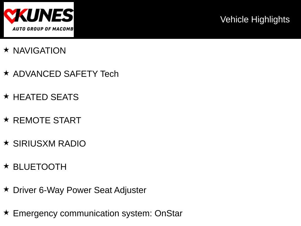• Turn-by-turn navigation directions: OnStar Turn-by-Turn Navigation