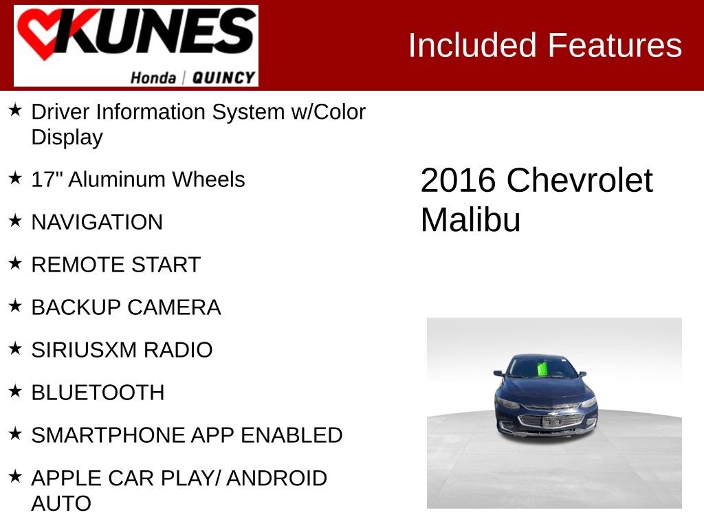 2016 Chevrolet Malibu LT 1LT Blue Velvet Metallic FWD 1.5L DOHC