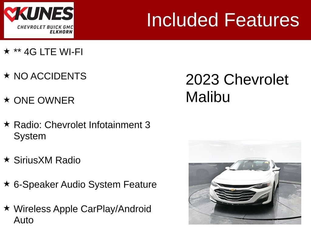2023 Chevrolet Malibu LT 1LT 1.5L DOHC CVT FWD Clean CARFAX. CARFAX One-Owner. 27/35 City/Highway MPG