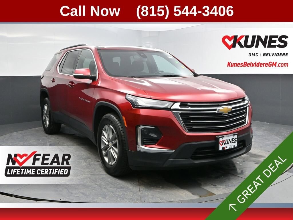 Certified. 2023 Chevrolet Traverse LT 1LT LT 1LT 6-Speaker Audio System Feature, 8-Way Power Driver Seat Adjuster, Automatic temperature control, Black Roof Rails, Emergency communication system, Exterior Parking Camera Rear, Front dual zone A/C, Heated Driver & Front Passenger Seats, Leather steering wheel, Panic alarm, Power Liftgate, Preferred Equipment Group 1LT, Radio: Chevrolet Infotainment 3 Plus System, Rear anti-roll bar, SiriusXM w/360L, Spoiler, Variably intermittent wipers, Wheels: 18 Bright Silver-Painted Aluminum. Radiant Red Tintcoat
