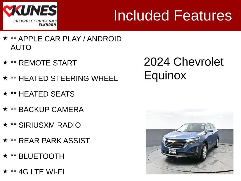 2024 Chevrolet Equinox LT 1.5L DOHC 6-Speed Automatic Electronic with Overdrive AWD Clean CARFAX. CARFAX One-Owner. 24/30 City/Highway MPG