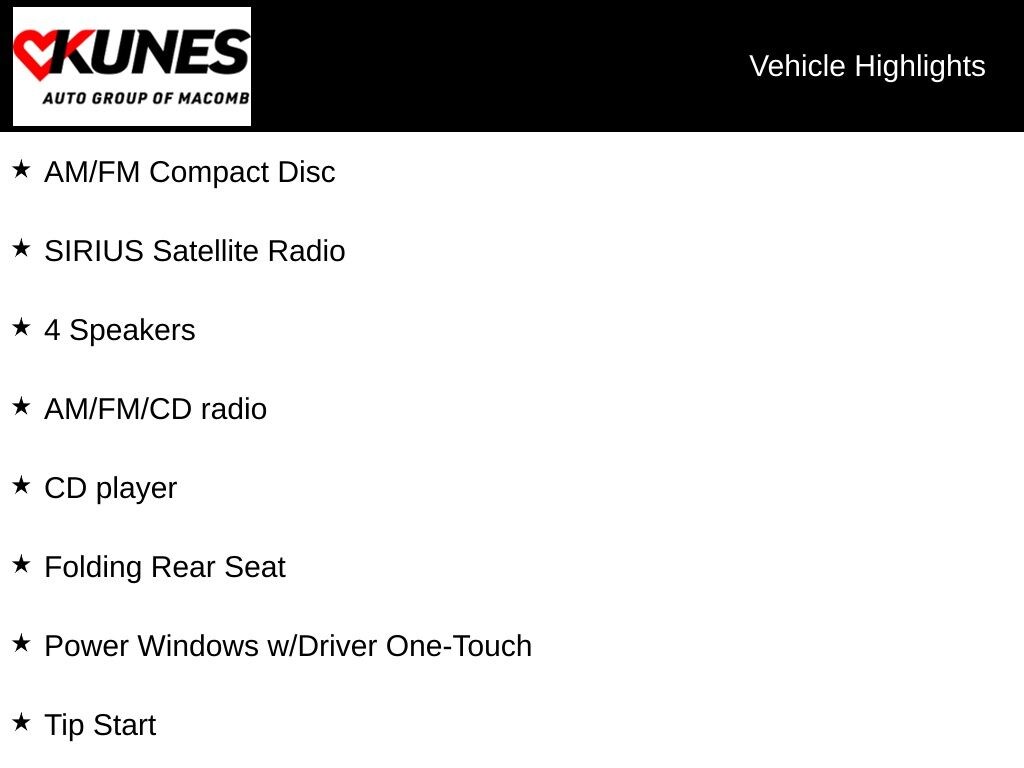 While we make every effort to ensure the data listed here is correct, there may be instances where some of the options or vehicle features may be listed incorrectly as we get data from multiple data sources. PLEASE MAKE SURE to confirm the details of this vehicle with the dealer to ensure its accuracy. Dealer cannot be held liable for data that is listed incorrectly. Listed price does not include any tax, title, license or $347.26 documentary service fee. Consult the dealer for fees, payments and complete details. * Offers or financing are subject to expiration and other restrictions. See dealer for qualifications and complete details. *Images shown may not necessarily represent exact vehicles at your dealership. See your dealer for complete details.