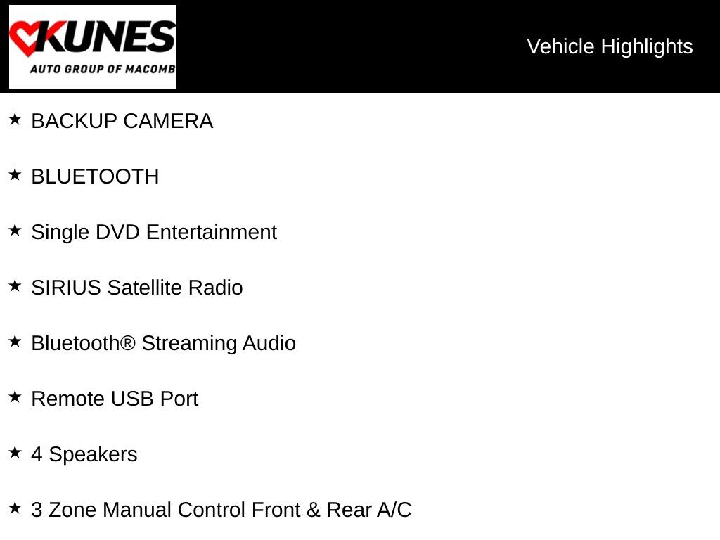 • Quick Order Package: multi-zone air conditioning, privacy glass, rear air conditioning