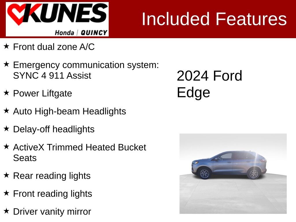 2024 Ford Edge SEL Silver Metallic AWD EcoBoost 2.0L I4 GTDi DOHC Turbocharged VCT