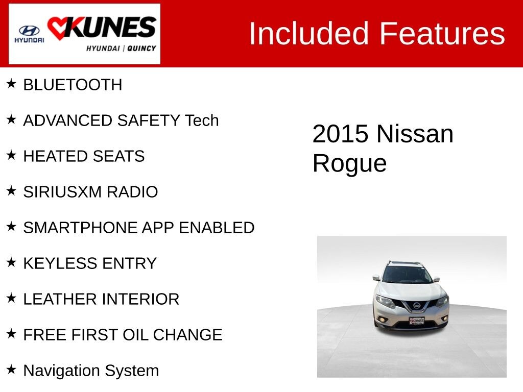 2015 Nissan Rogue SL Pearl White AWD 2.5L I4 DOHC 16V