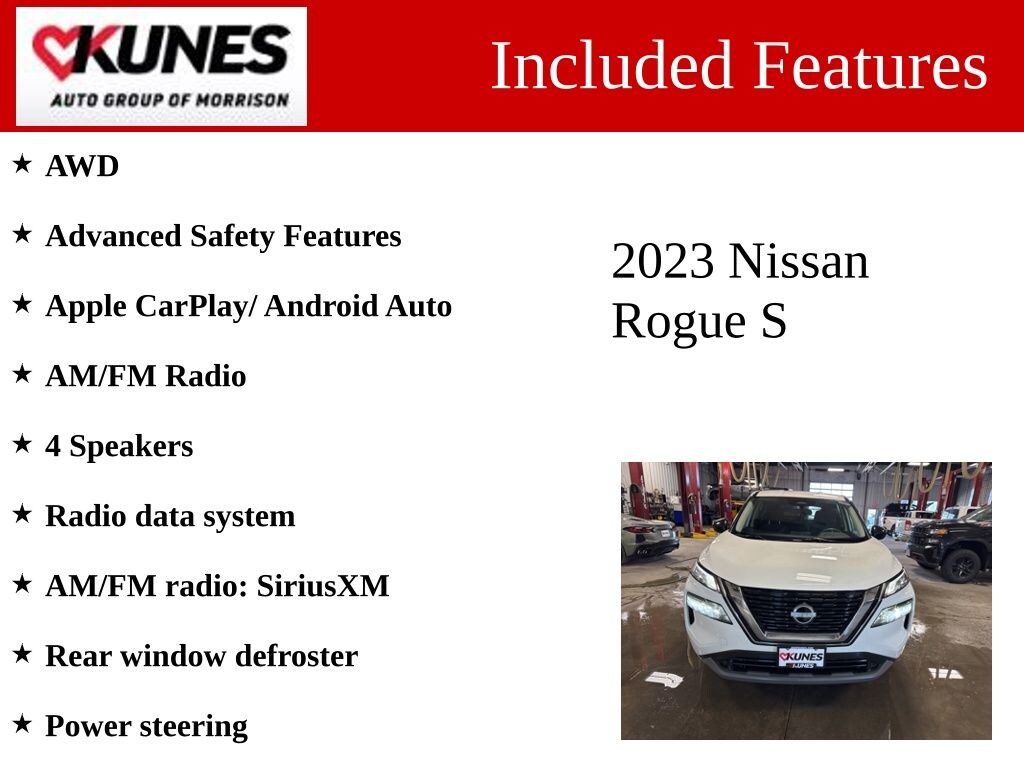 2023 Nissan Rogue S Glacier White AWD 1.5L I3 Turbocharged DOHC 12V LEV3-ULEV50 201hp