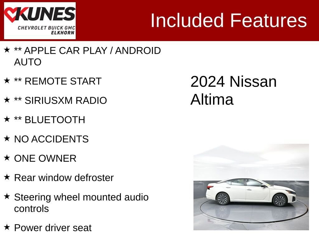 2024 Nissan Altima 2.5 SV 2.5L 4-Cylinder DOHC 16V CVT with Xtronic FWD Clean CARFAX. CARFAX One-Owner. 27/39 City/Highway MPG
