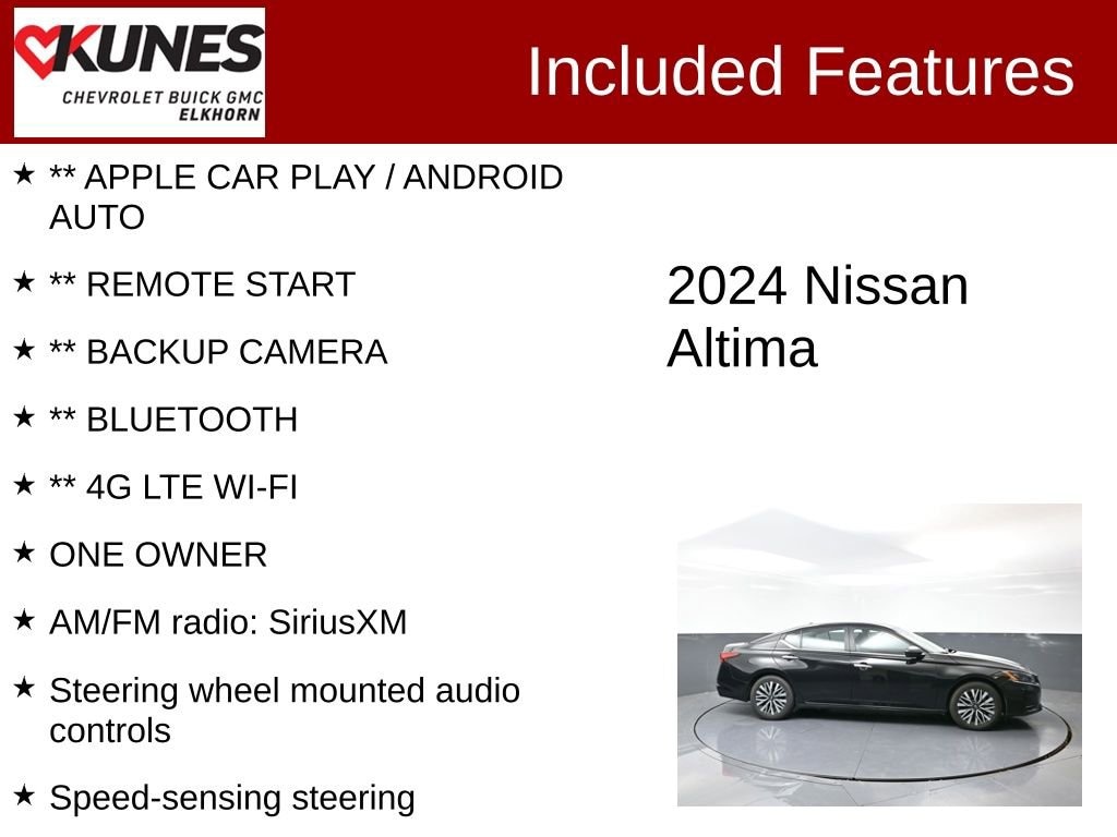2024 Nissan Altima 2.5 SV 2.5L 4-Cylinder DOHC 16V CVT with Xtronic FWD CARFAX One-Owner. 27/39 City/Highway MPG