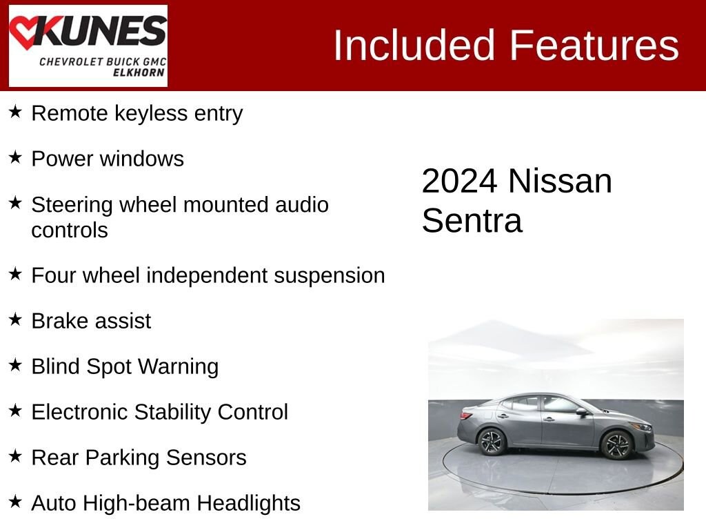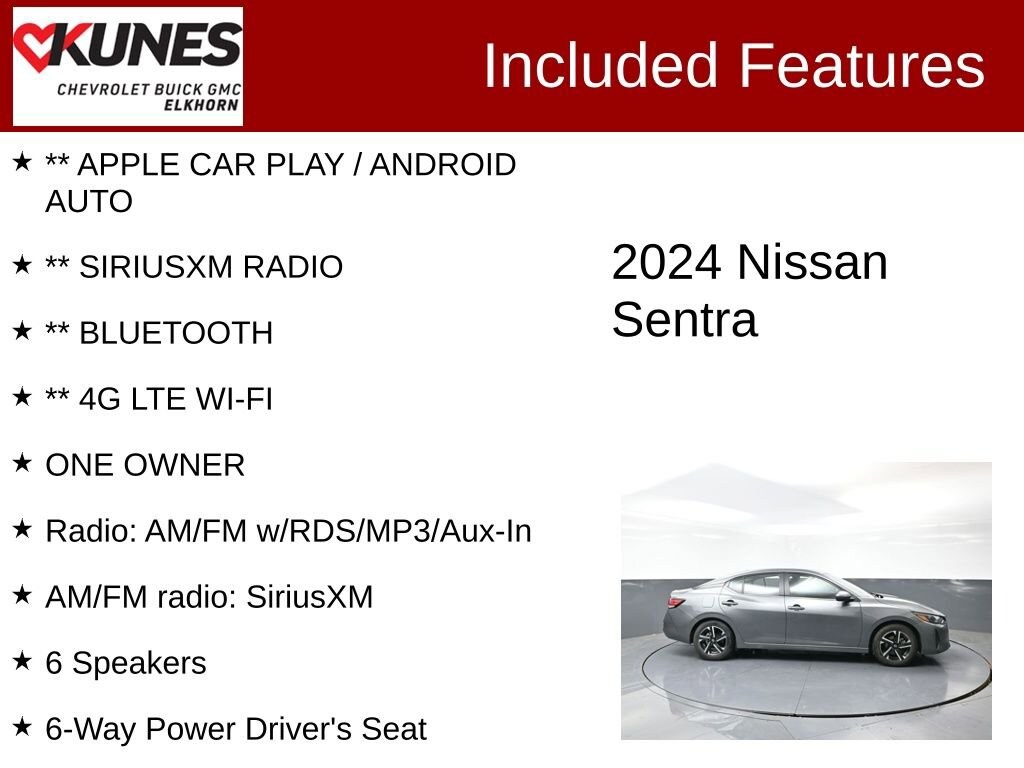 2024 Nissan Sentra SV 2.0L I4 DOHC CVT with Xtronic FWD CARFAX One-Owner. 30/40 City/Highway MPG