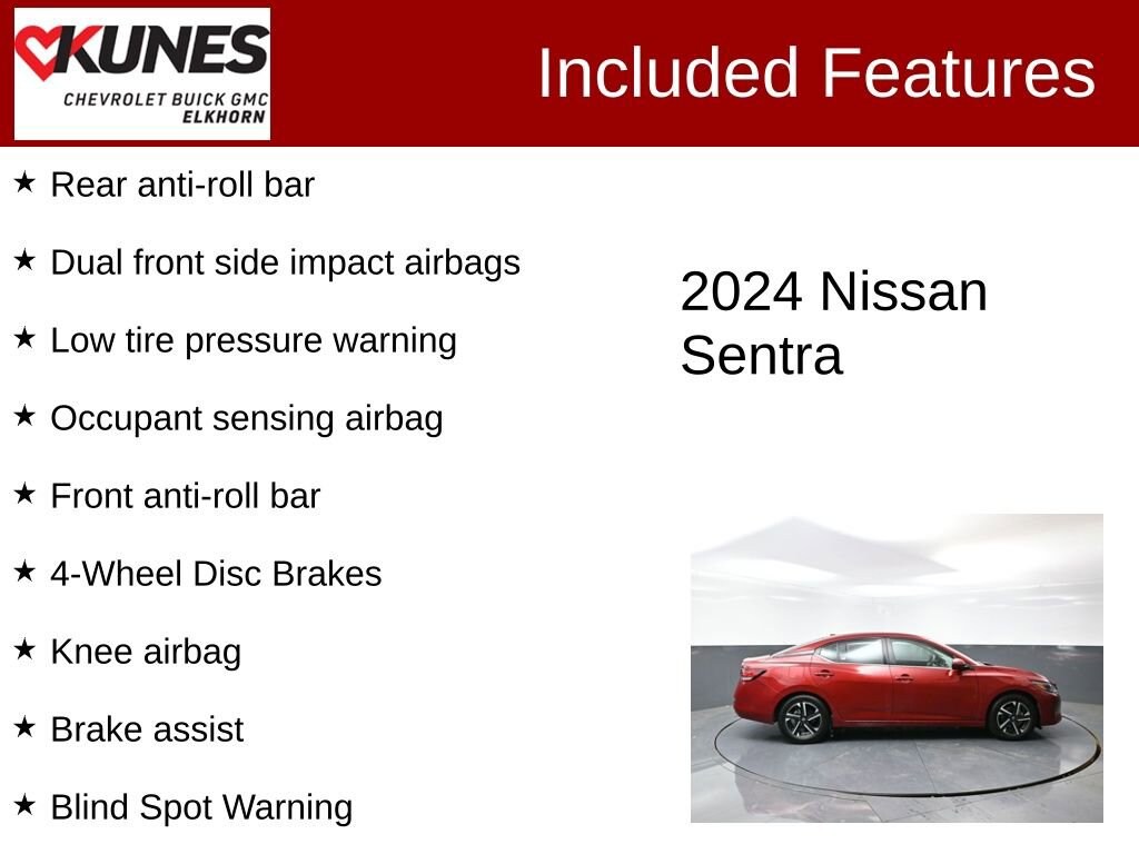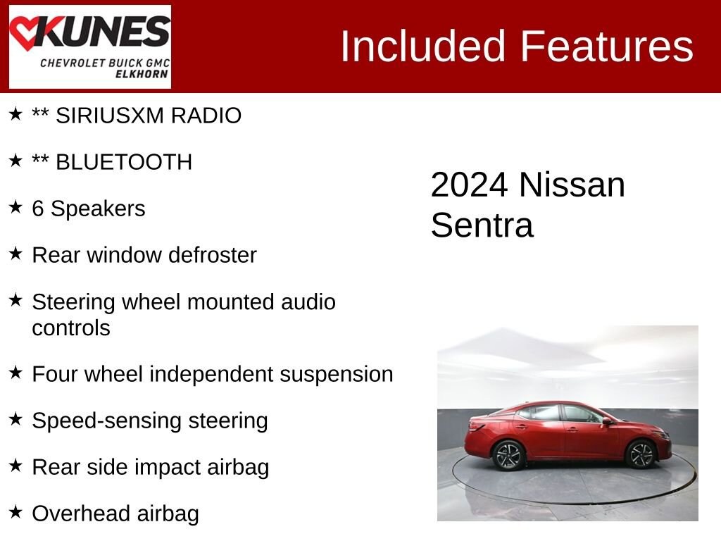 2024 Nissan Sentra SV 2.0L I4 DOHC CVT with Xtronic FWD Clean CARFAX. CARFAX One-Owner. 30/40 City/Highway MPG