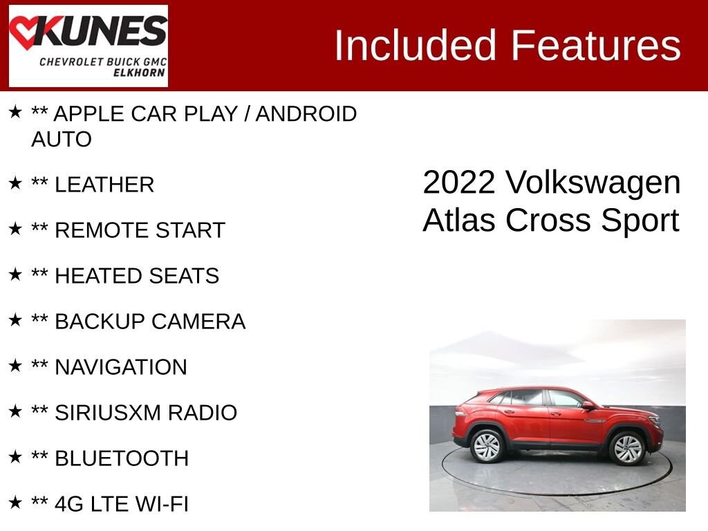 2022 Volkswagen Atlas Cross Sport 3.6L V6 SE w/Technology 3.6L VR6 8-Speed Automatic with Tiptronic AWD Clean CARFAX. CARFAX One-Owner.