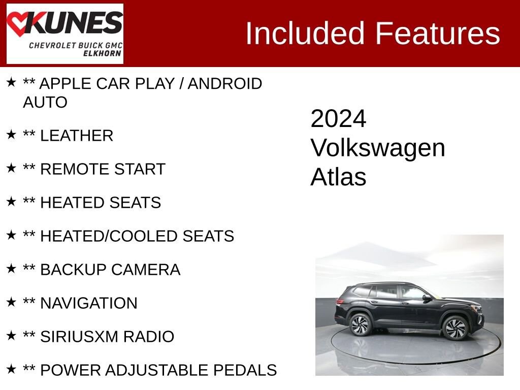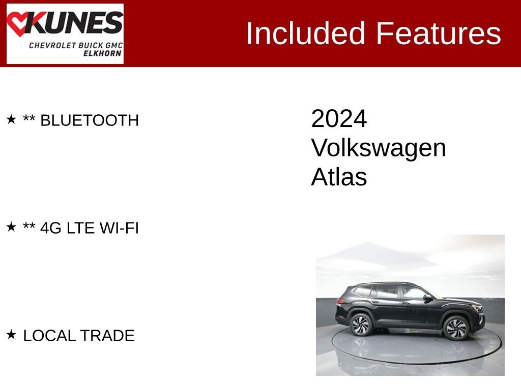 2024 Volkswagen Atlas 2.0T SE w/Technology 2.0L TSI 8-Speed Automatic with Tiptronic FWD CARFAX One-Owner. Odometer is 7134 miles below market average! 20/27 City/Highway MPG